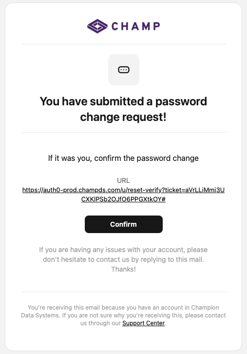 When you’ve been selected to take part in the Alpha test, you will receive an email like the one below. Click the confirm button to begin the reset process.